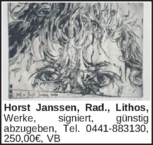 Anzeigentitel: Horst Janssen, Rad., Lithos,