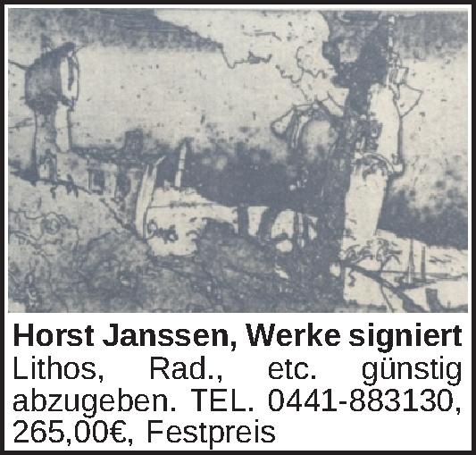 Anzeigentitel: Horst Janssen, Werke signiert