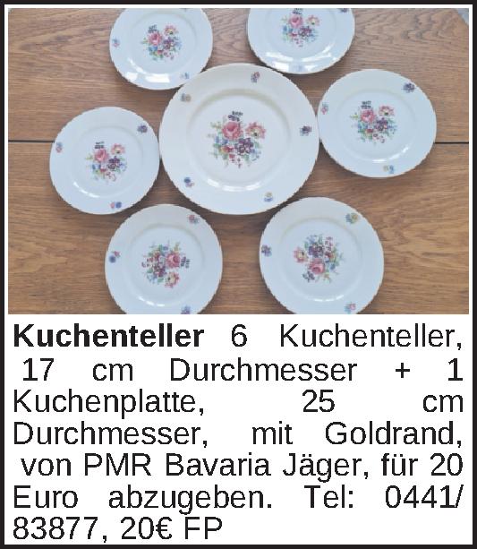 6 Kuchenteller, 17 cm Durchmesser + 1Kuchenplatte, 25 cm Durchmesser, mit