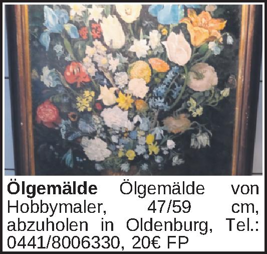 Ölgemälde von Hobbymaler,47/59 cm, abzuholen in Oldenburg, Tel.: