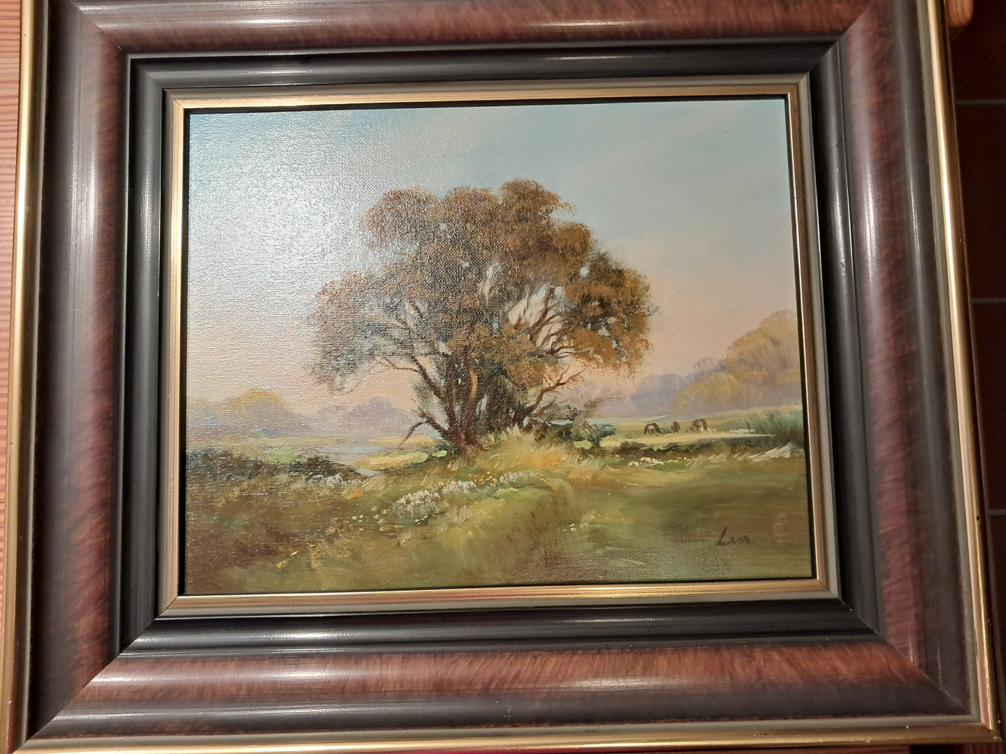 Worpswede Ölgemälde auf Leinwand Auenlandschaft mit Rahmen 42/36 cm Tel.0441 -36247