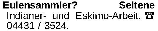 Eulensammler? Seltene Indianer- und Eskimo-Arbeit. ‡ 04431 / 3524.Kontakt