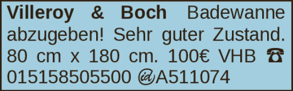 Anzeigentitel: Villeroy & Boch Badewanne abzugeben!