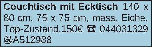 Couchtisch 140 x 80 cm mit Beistelltisch 75 x 75 cm, mass. EicheTop-Zustand.
