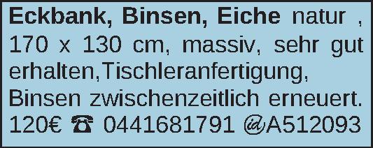 Binseneckbank, 170 x 130 cm, massiv, sehr gut erhalten,