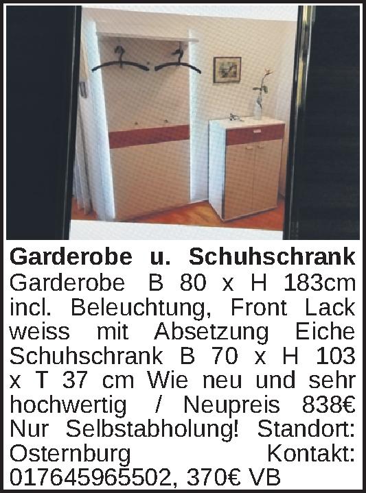 Garderobe B 80 x H 183cm incl. Beleuchtung, Front Lack weiss mit Absetzung EicheSchuhschrank B 70 x H 103 x T 37 cm