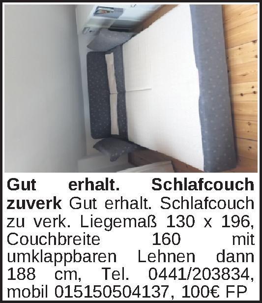 Anzeigentitel: Gut erhalt. Schlafcouch zuverk