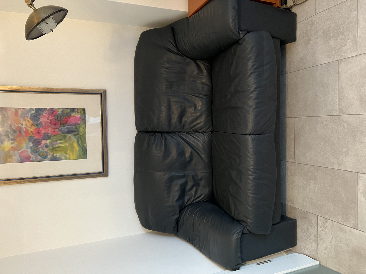 Anzeigentitel: Hochwertige Ledercouch mit Hocker