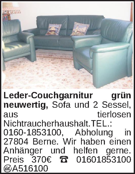 neuwertig, Sofa und 2 Sessel, aus tierlosen Nichtraucherhaushalt.TEL.: 0160-1853100, Abholung in 27804 Berne. Wir haben einen Anhänger und helfen gerne. Preis 370€Kontakt