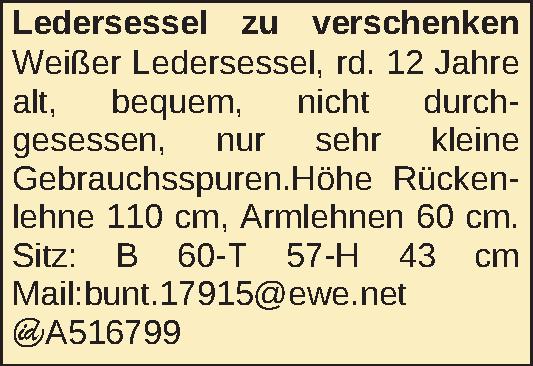 Anzeigentitel: Ledersessel zu verschenken
