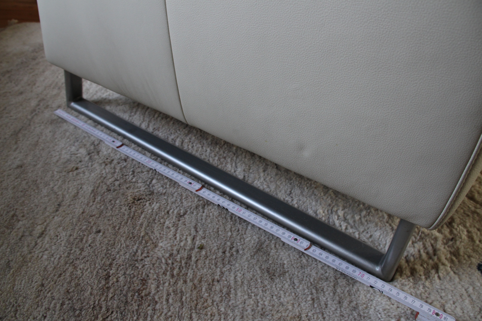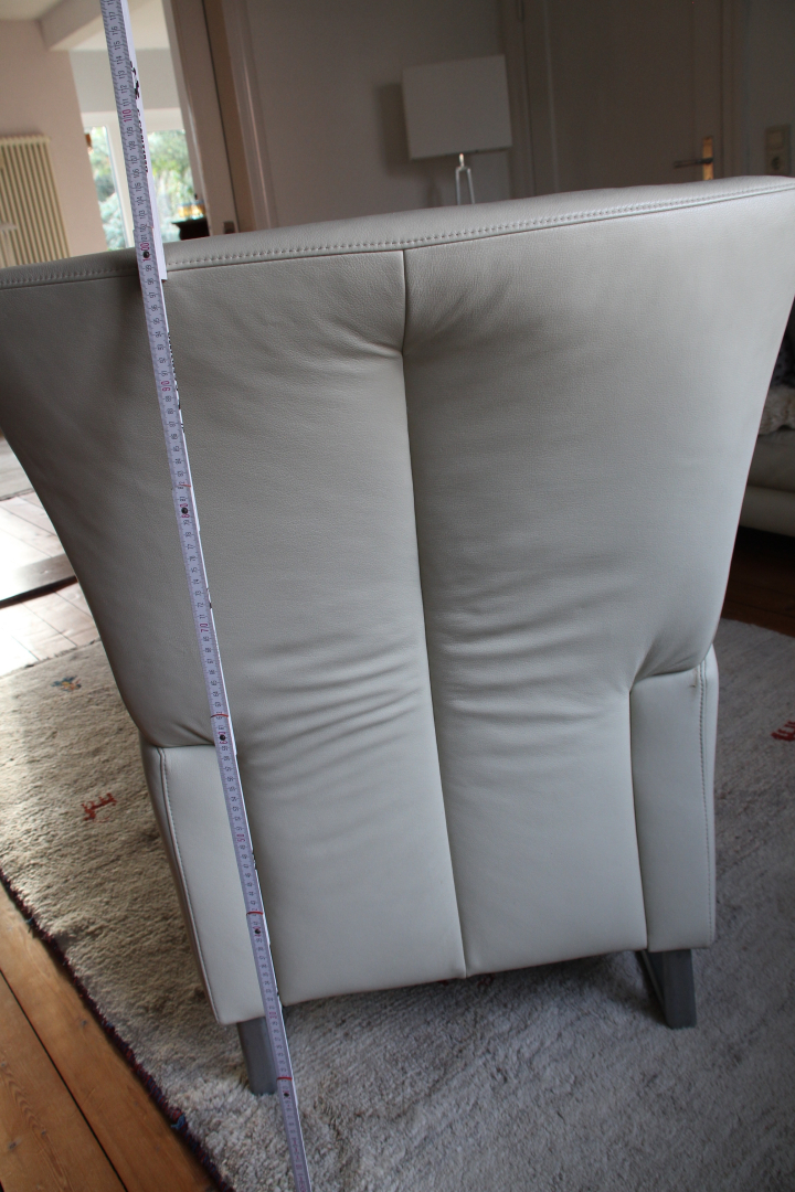 Weißer Ledersessel, rd. 12 Jahre alt, bequem, nicht durchgesessen, hat nur ganz kleine Gebrauchsspuren. Höhe der Rückenlehne 110 cm, Armlehnen 60 cm. Sitzfläche Breite 60 cm, Tiefe 57 cm, Höhe 43 cmKontakt