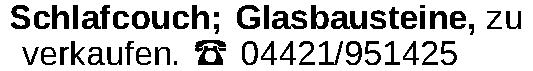 Schlafcouch; Glasbausteine, zu verkaufen. ‡ 04421/951425Kontakt