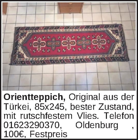 Original aus der Türkei, 85x245, bester Zustand, mit rutschfestem Vlies. Telefon 01623290370, Oldenburg