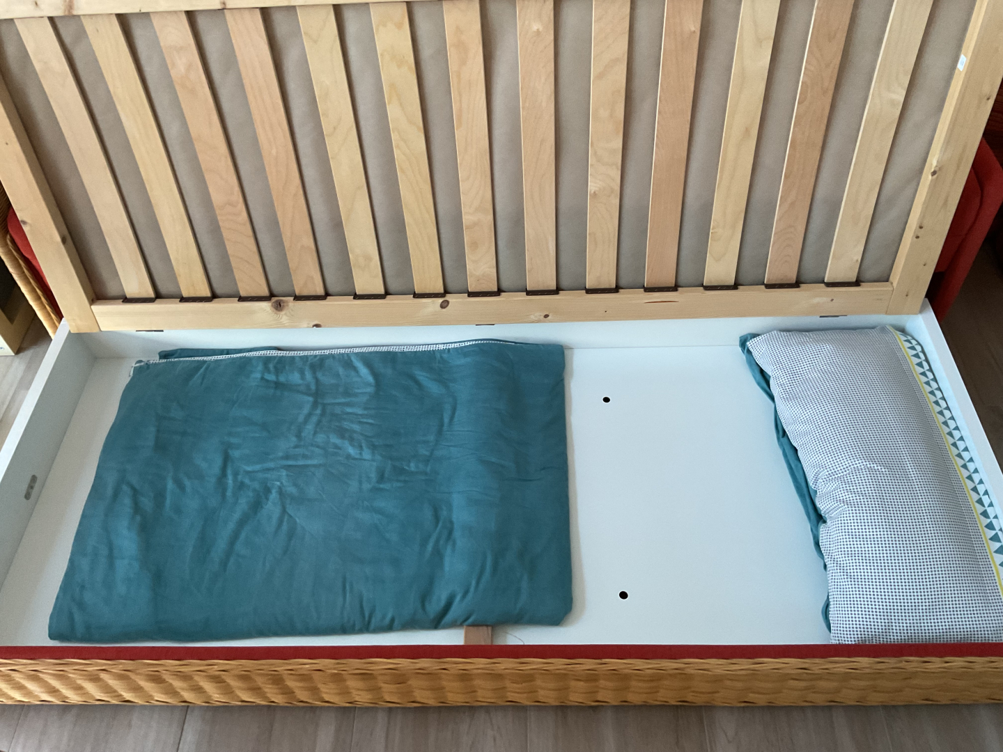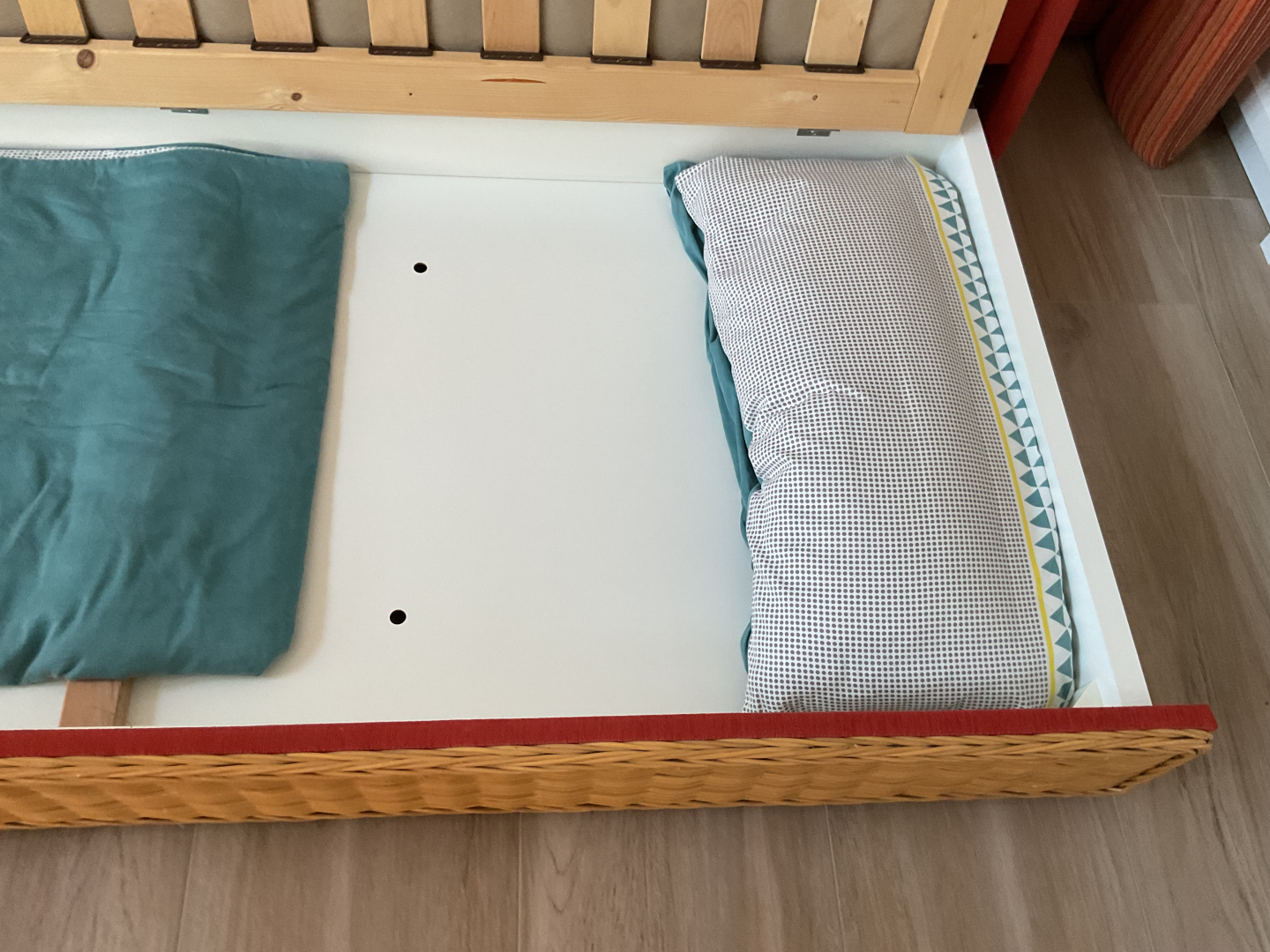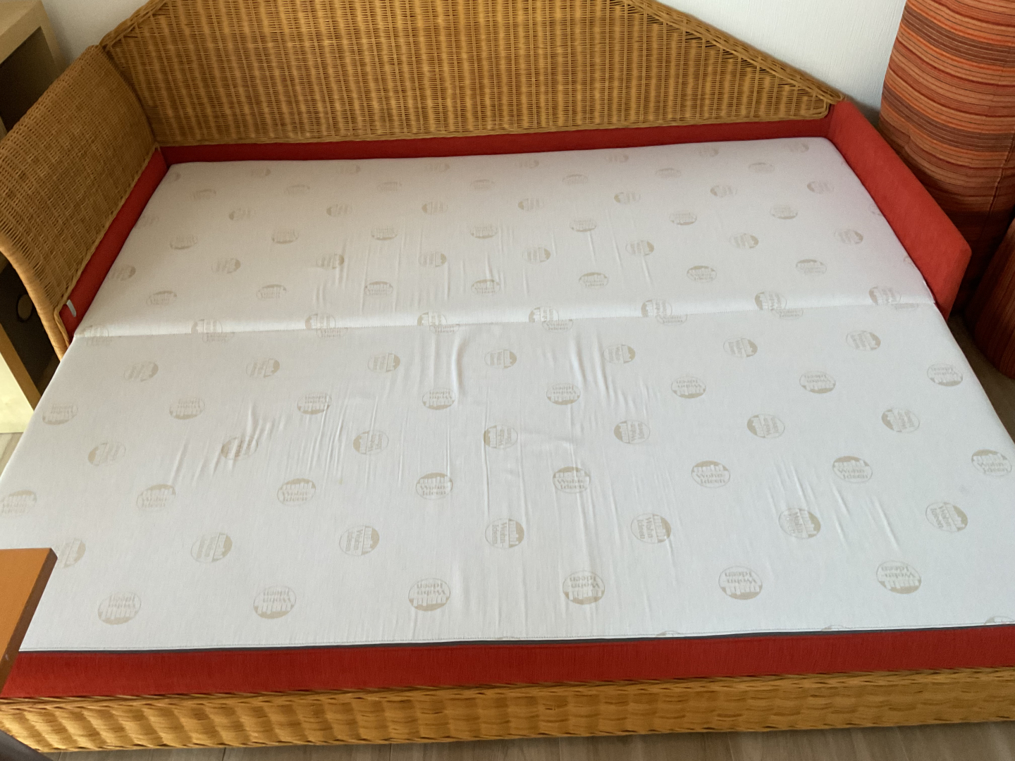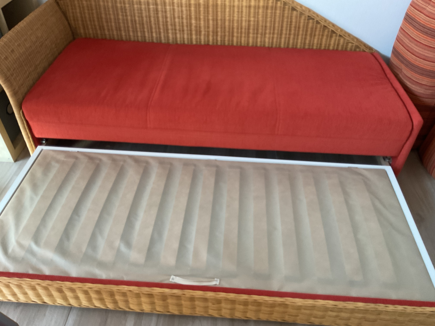 Unser seltenst genutztes Gästebett in sehr gutem Zustand wird nicht mehr benötigt.Breite ca. 2 m , mit linker Lehne ca. 2,10 m