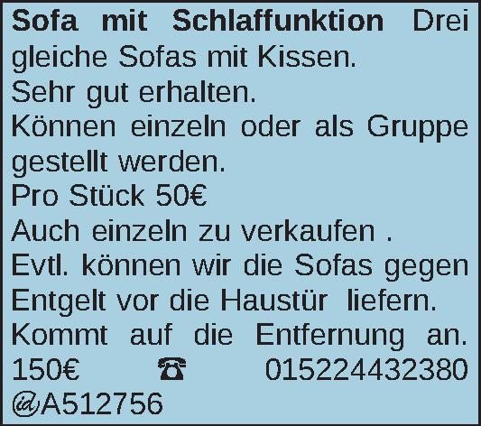 Evtl. können wir die Sofas gegen Entgelt vor die Haustür liefern.