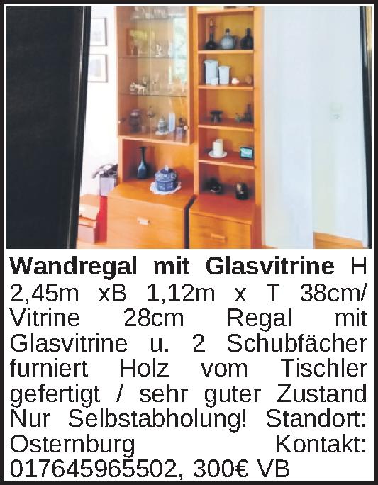Regal mit Glasvitrine u. 2 Schubfächer furniert Holz vom Tischler gefertigt / sehr guter Zustand