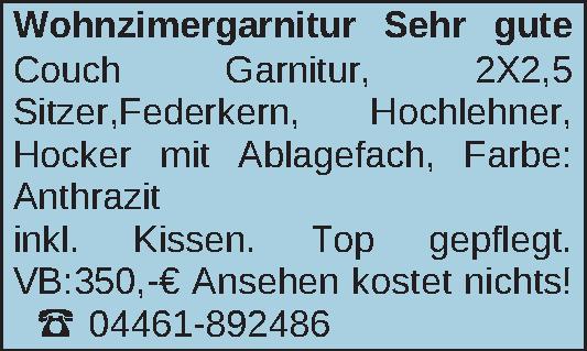 inkl. Kissen. Top gepflegt. VB:350,-€ Ansehen kostet nichts! Tel.:04461-892486