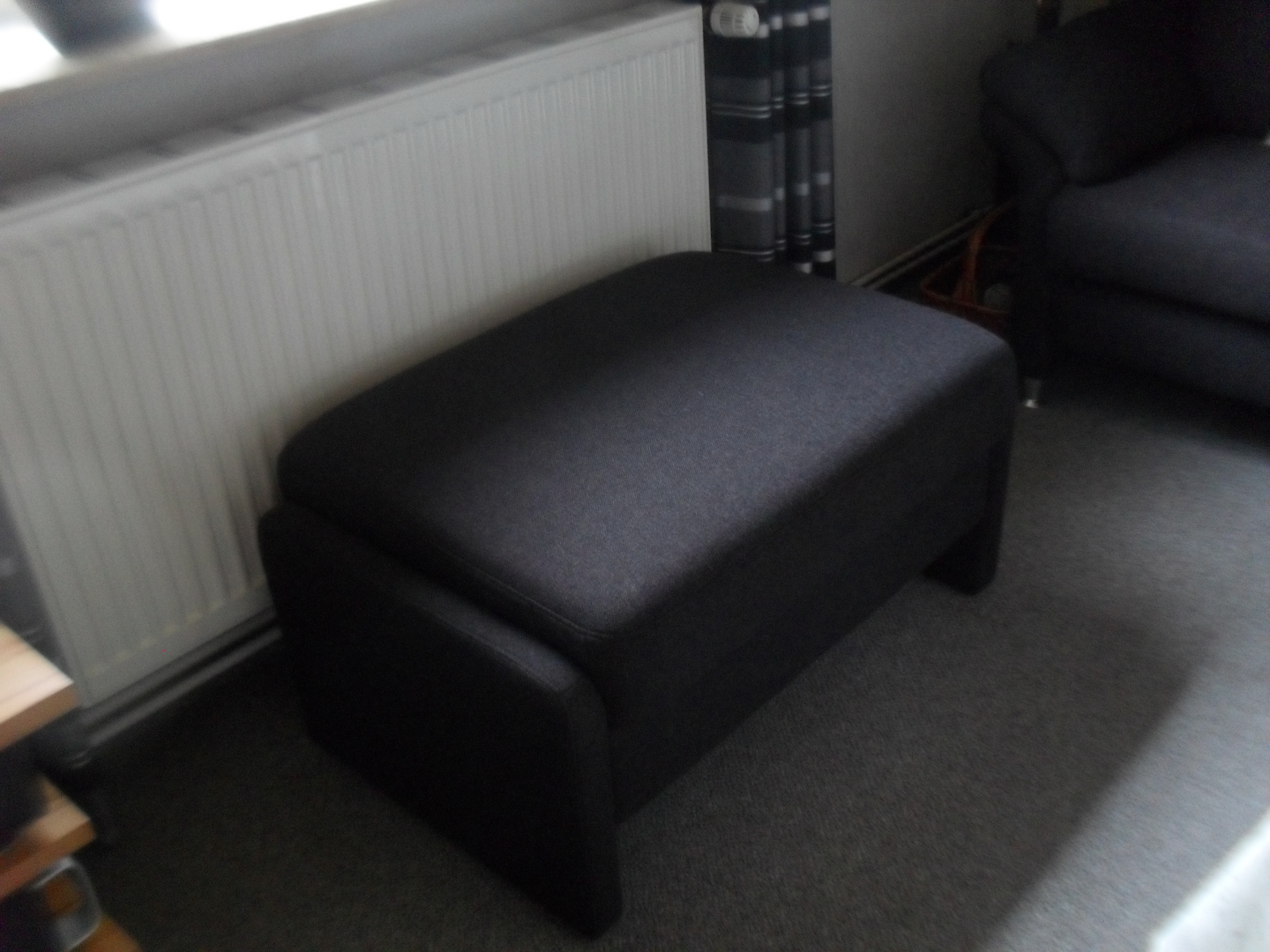 Sehr gute Couch Garnitur, 2X2,5 Sitzer,Federkern, Hochlehner, Hocker mit Ablagefach, Farbe: Anthrazit