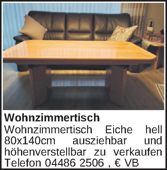 Wohnzimmertisch Eiche hell 80x140cm ausziehbar und höhenverstellbar zu verkaufen Telefon 04486 2506