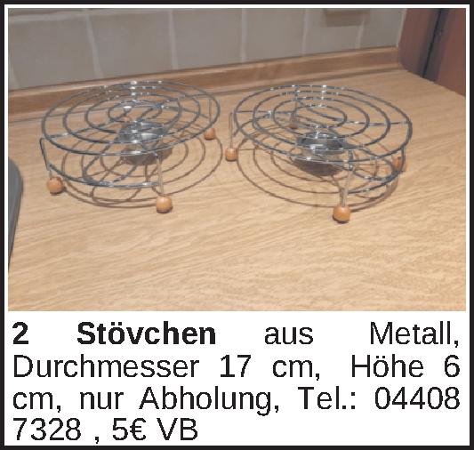 aus Metall, Durchmesser 17 cm, Höhe 6 cm, nur Abholung, Tel.: 04408 7328Kontakt