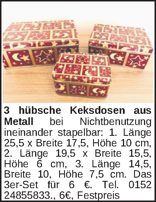 Anzeigentitel: 3 hübsche Keksdosen aus Metall