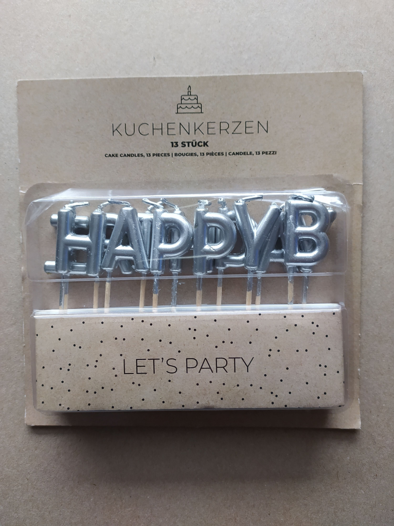 Happy Birthday in Form von 13 Kuchen-kerzen . Noch original verpackt .