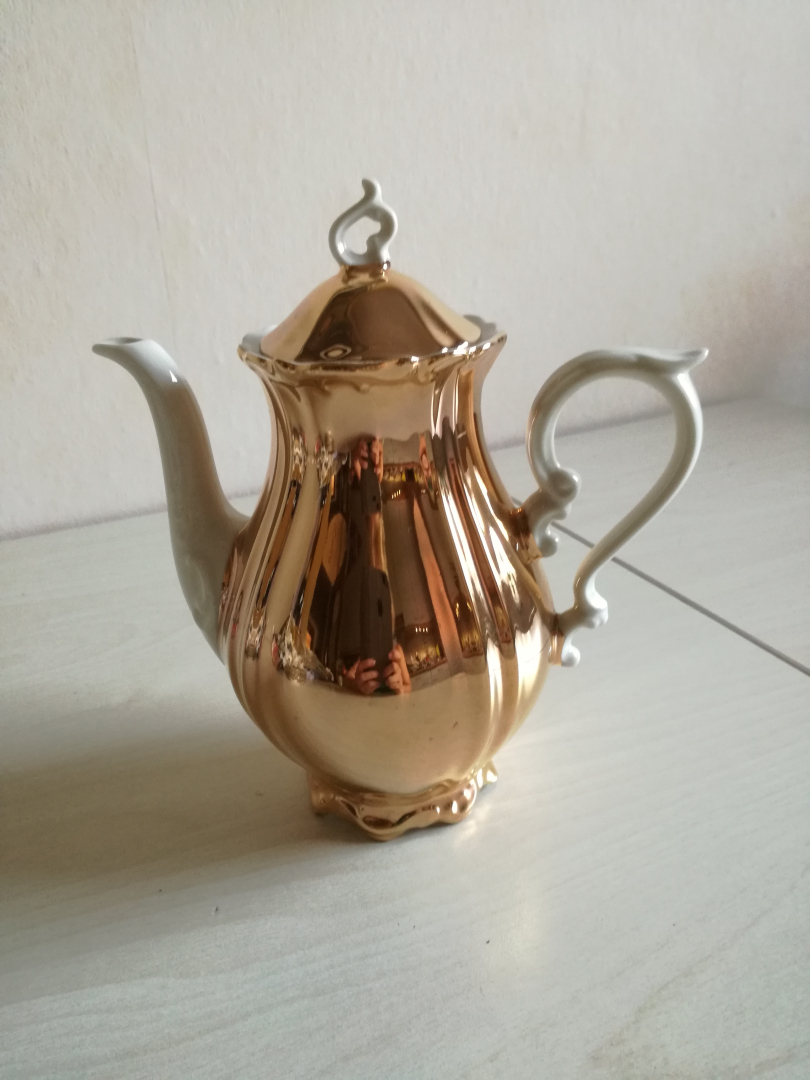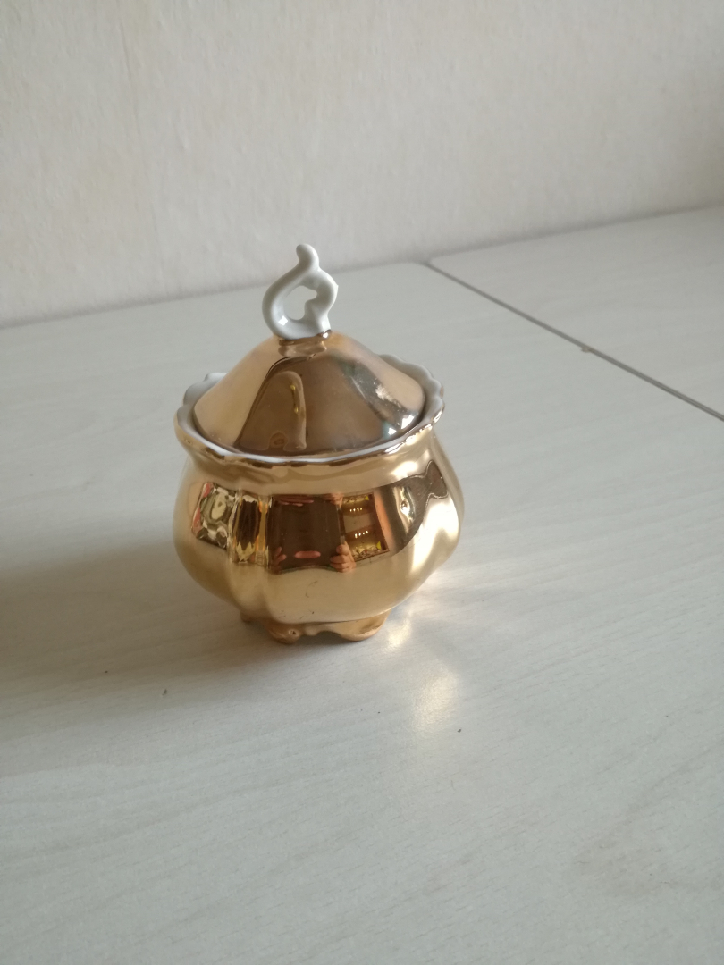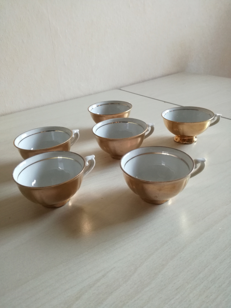 Ich biete ein 6 tgl. Mocca-Service in Gold in den Maßen, das Service ist heile und ohne AbsplitterungenTasse: