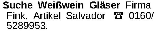 Suche Weißwein Gläser Firma Fink, Artikel Salvador ‡ 0160/ 5289953.Kontakt