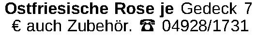 Ostfriesische Rose je Gedeck 7 € auch Zubehör. 04928/1731