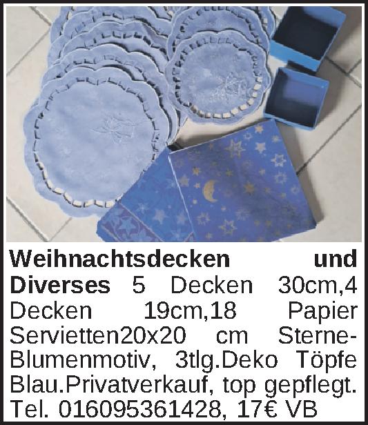 Anzeigentitel: Weihnachtsdecken und Diverses