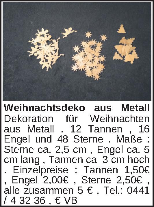 Anzeigentitel: Weihnachtsdeko aus Metall