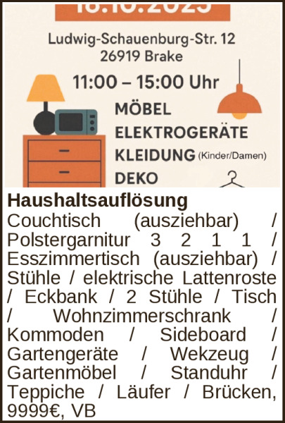 Anzeige vom 14.10.2025 in der Rubrik "Haushaltsauflösungen"
