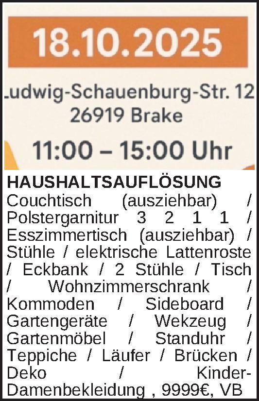 Anzeige vom 14.10.2025 in der Rubrik "Haushaltsauflösungen"