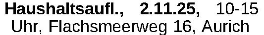 Haushaltsaufl., 2.11.25, 10-15 Uhr, Flachsmeerweg 16, Aurich