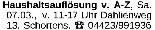 Erscheinungsdatum: Anzeige vom 7.3.2026 in der Rubrik "Haushaltsauflösungen"