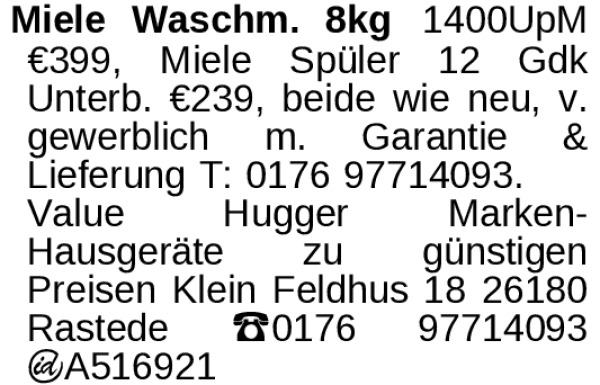 Erscheinungsdatum: Anzeige vom 18.3.2026 in der Rubrik "Haushaltsgeräte"