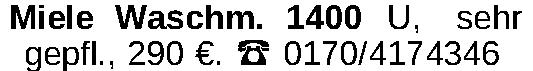 Miele Waschm. 1400 U, sehr gepfl., 290 €. 0170/4174346
