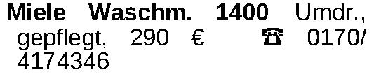 Miele Waschm. 1400 Umdr., gepflegt, 290 € 0170/ 4174346