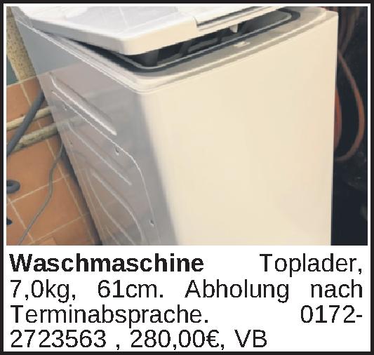 Toplader, 7,0kg, 61cm.Abholung nach Terminabsprache.