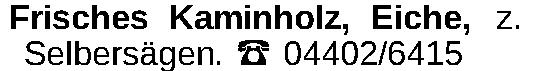 Frisches Kaminholz, Eiche, z. Selbersägen. ‡ 04402/6415Kontakt