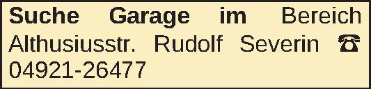 Suche Garage im Bereich Althusiusstr. Rudolf Severin 04921-26477