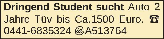 Student sucht Auto 2 Jahre Tüv bis Ca.1500 Euro.Kontakt