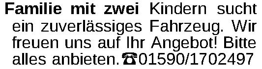 Erscheinungsdatum: Anzeige vom 14.3.2026 in der Rubrik "Kaufgesuche"