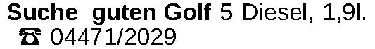 Suche guten Golf 5 Diesel, 1,9l. ‡ 04471/2029Kontakt