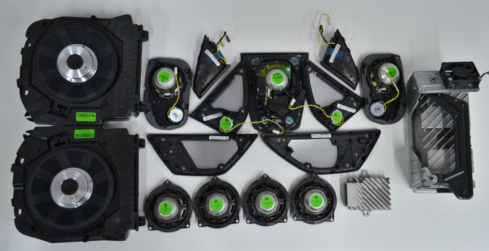 BMW 5er F10 F11 Bang & Olufsen Soundsystem Komplettset mit Kabelbaum 9287247.Komplettset inklusive aller Lautsprecher, Abdeckungen, Verstärker und des kompletten Kabelbaums.