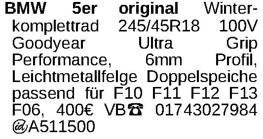 Anzeigentitel: BMW 5er F10 F11 original Winterkomplettrad 245/45R18 100V