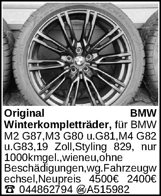 für BMW M2 G87,M3 G80 u.G81,M4 G82 u.G83,19 Zoll,Styling 829, nur 1000 KM gel.,wie neu,ohne Beschädigungen,wg.Fahrzeugwechsel,Neupreis 4500€Kontakt