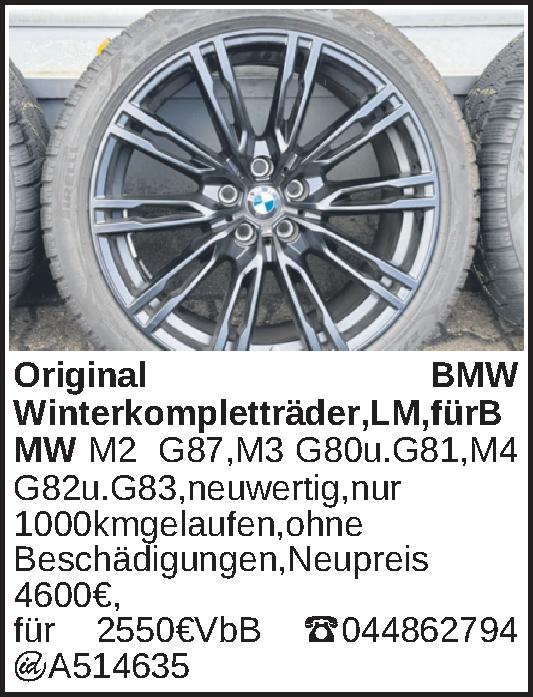 Firma G87,M3 G80u.G81,M4 G82 u.G83, neuwertig nur 1000km gelaufen,ohne Beschädigungen,Neupreis 4600€,Tel.044862794