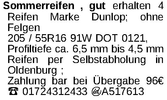 Erscheinungsdatum: Anzeige vom 14.4.2026 in der Rubrik "Reifen"