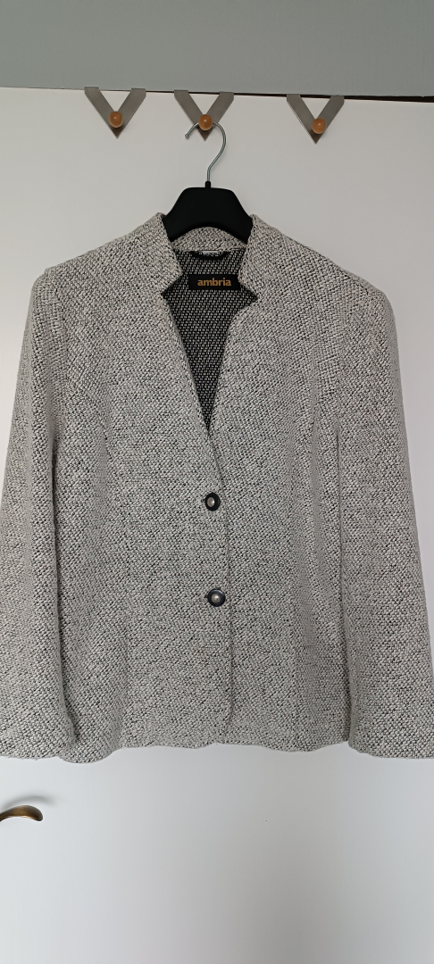 Herrlich weicher Blazer in den Farben schwarz/weiß, in gepflegter Aufmachung mit Stehkragen und 2 Taschen.Ungefüttert. 65% Baumwolle, 35% Polyester, maschinenwaschbar. Länge ca. 62 cm.